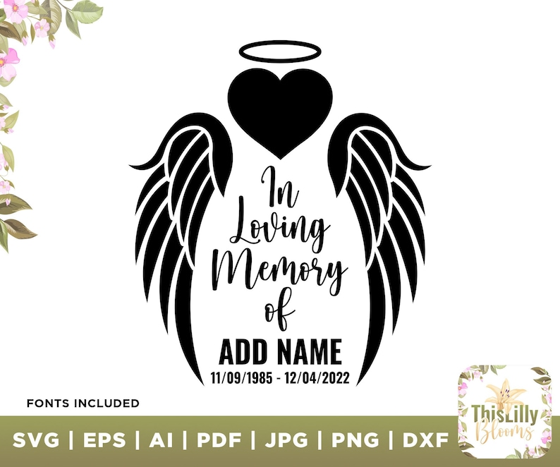 In Loving Memory Heart Svg, In Memory Angel Wings SVG - Memory Day Svg - Create Your Own In Loving Memory